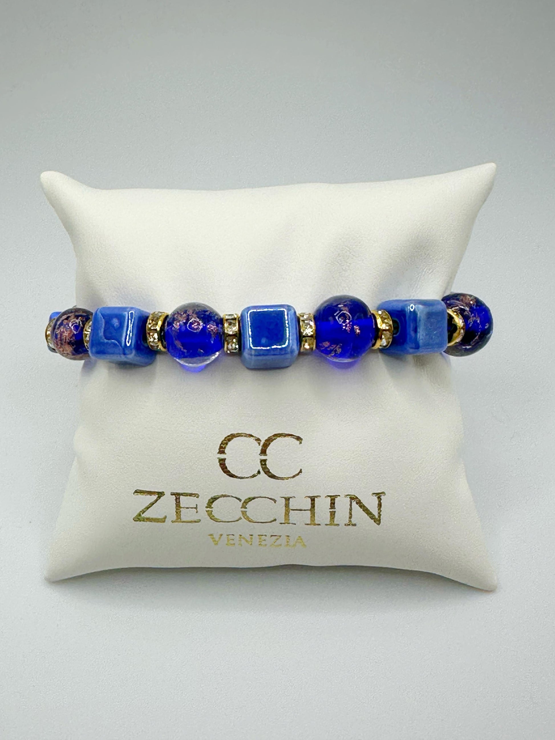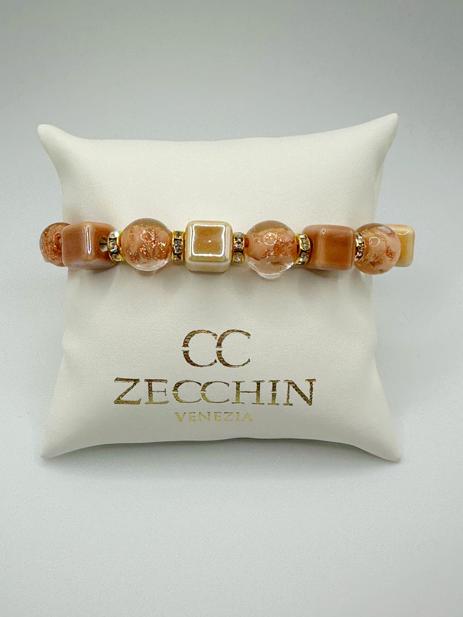 BRACCIALE CUBO perle in vetro di murano, ceramica e polvere d'oro LP223