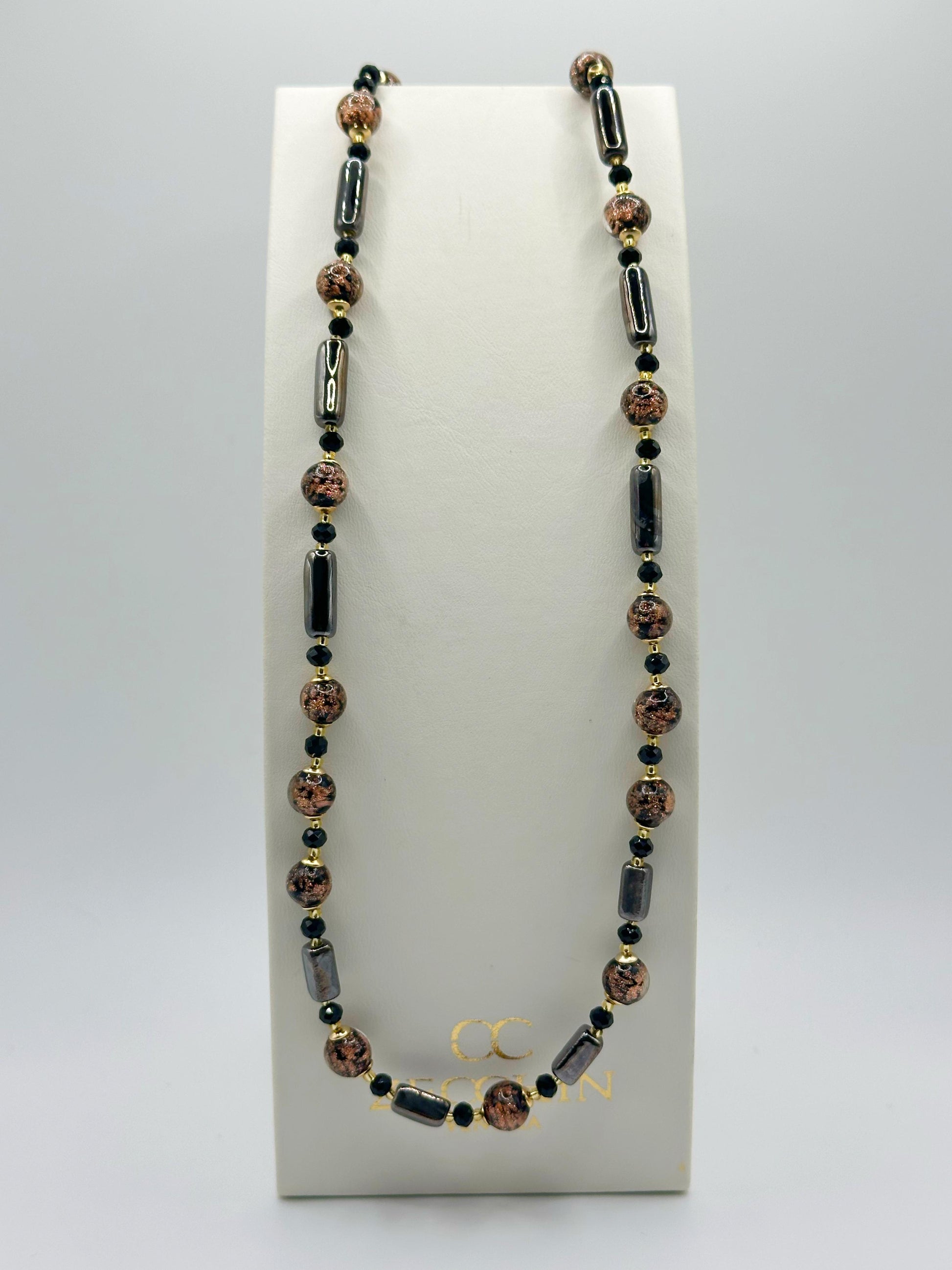 La Collana Atene ti porterà in un viaggio di avventura con il suo design unico. Realizzato con vetro e ceramica di alta qualità, incorpora l'energia positiva dell'avventurina. Ispirata allo splendore di Atene, questa collana è lunga 55 cm, perfetta per chi vuole distinguersi con stile.