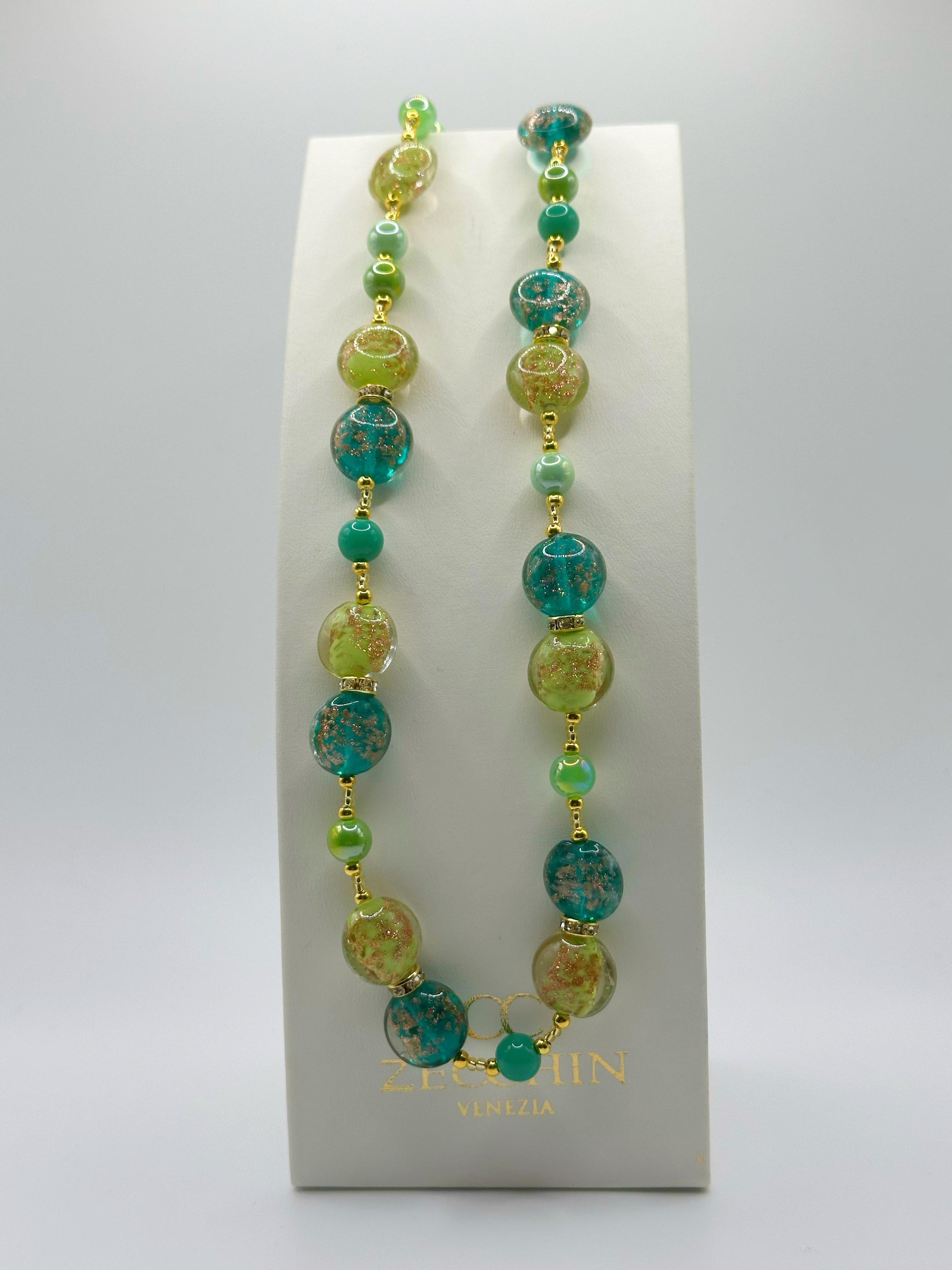 Collana lente in vetro di Murano che unisce funzionalità e eleganza, realizzato con la maestria artigianale Zecchin, diventa un accessorio versatile per chi apprezza il design sofisticato. Con i suoi 56 cm di lunghezza, si adatta perfettamente a diversi stili di abbigliamento, dal casual al più raffinato. Una novità che riflette l'eccellenza della tradizione veneziana, ideale per chi ricerca pezzi unici e caratterizzati da una qualità costruttiva superiore.