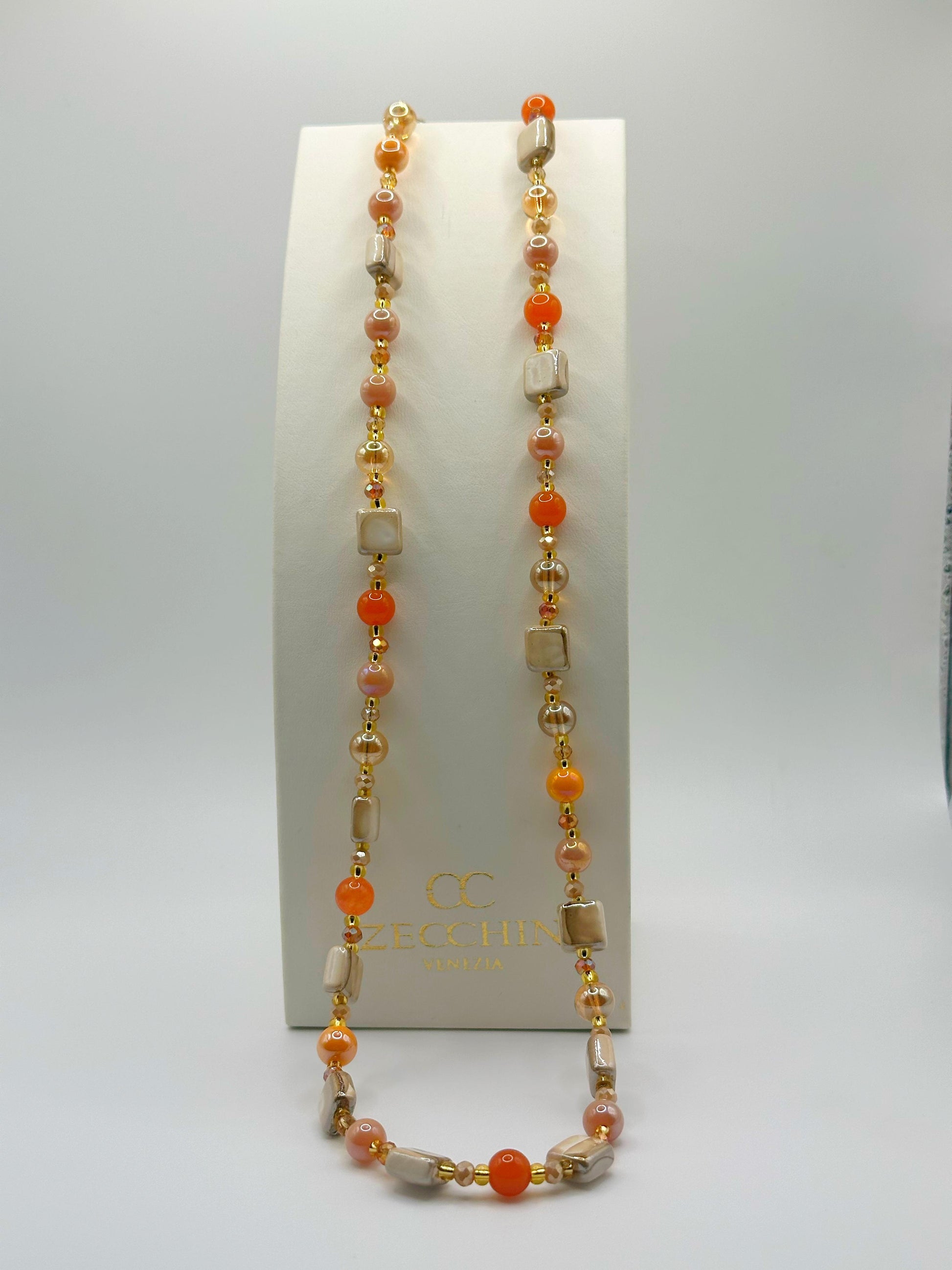 MIKONOS COLLANA LUNGA perle in vetro di murano a CUBI 4 varianti colore